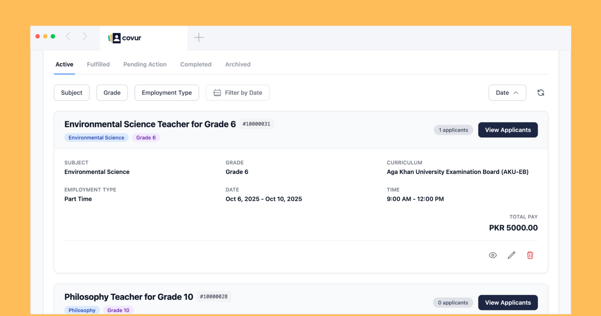 Quickly create job listings with specific requirements and pay rates.