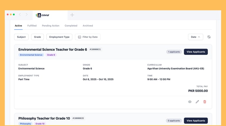 We built a platform that makes hiring fast, scalable, and fair. Teachers—whether subject specialists or industry experts—can now connect with schools based on availability and fit. No more endless job postings, no more sifting through piles of CVs, no more months of waiting. Just real people, with the right skills, ready to make a difference in classrooms.