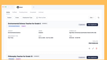 Manage your entire hiring process on one platform—no more scattered emails or CV. You'll get a richer view of each candidate than a traditional CV can offer, with detailed profiles, verified qualifications, and—most importantly—real performance reviews from other schools in our network.
